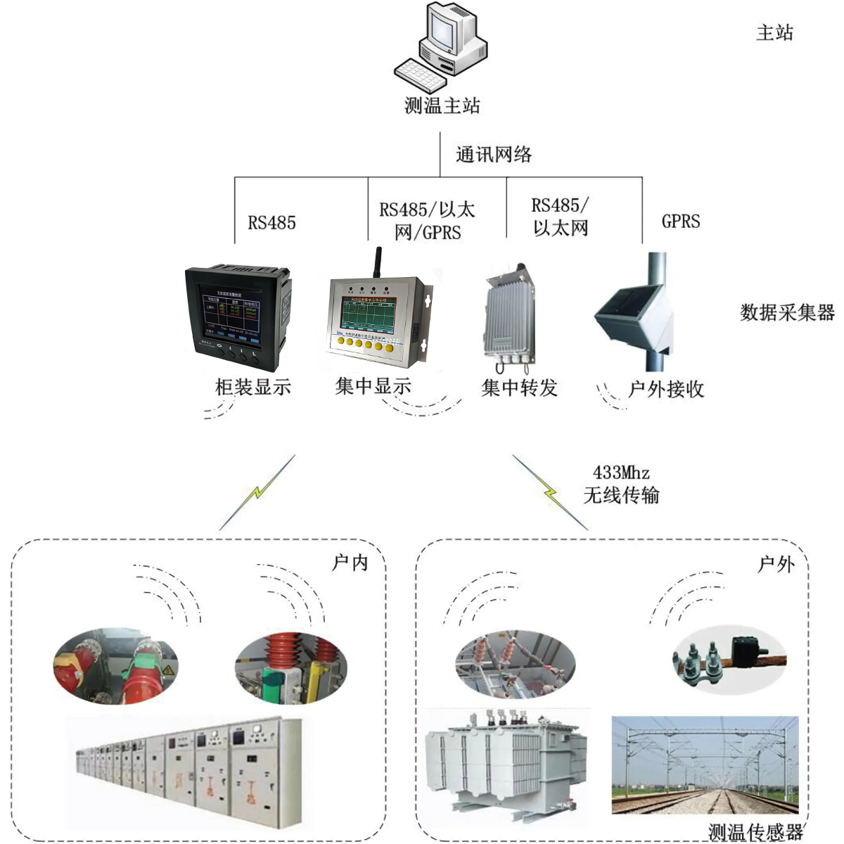 2、高压开关柜、变压器、电容器等空间狭小设备的温度监测;