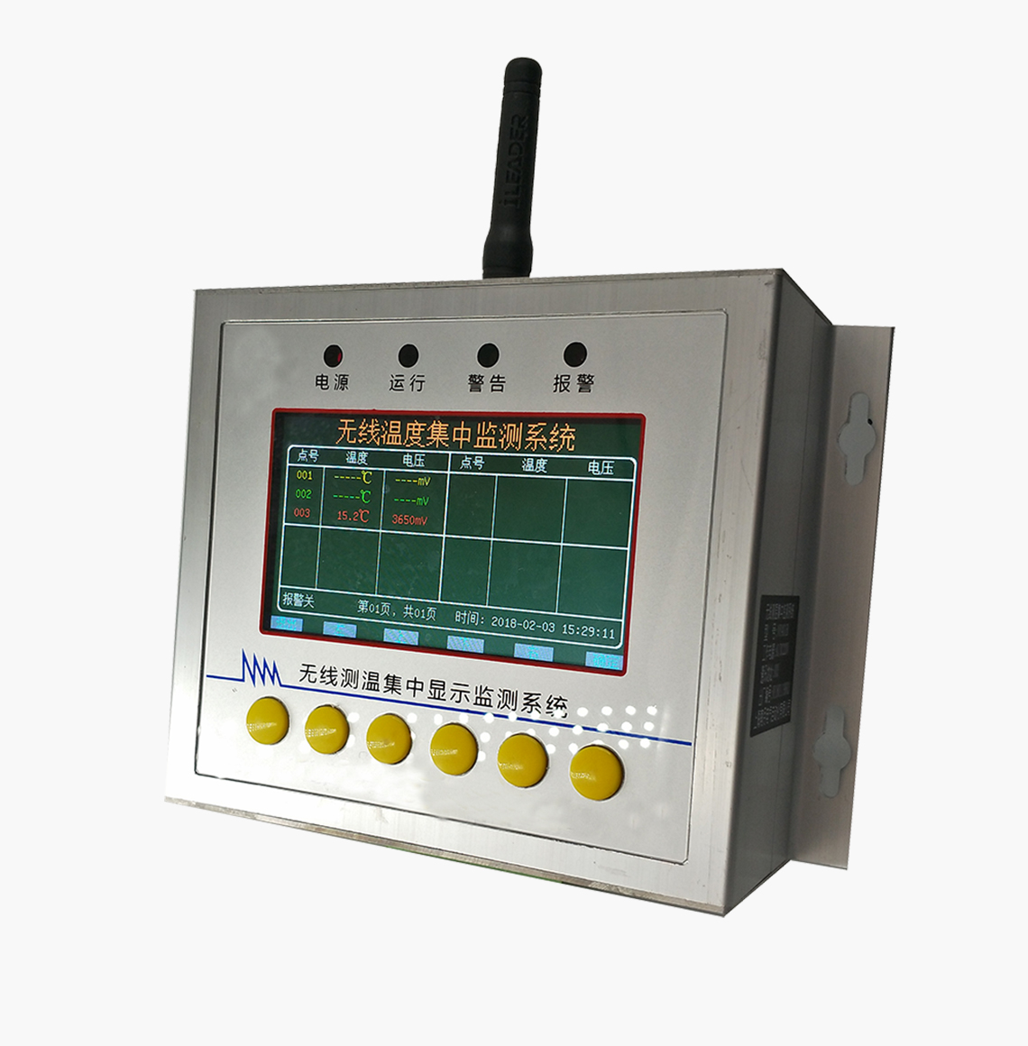 测温通信终端(无线测温主机):安装在配电柜或集控室内,负责接收各无线温度传感器发送出的温度数据,在数据库中作长期保存,实时显示监测点。
